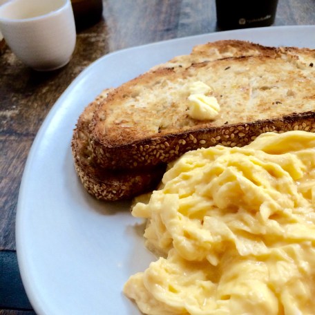 It’s time to grab some breakfast: multigrain toast with scrambled eggs. I’m getting some energy for a busy day ahead.